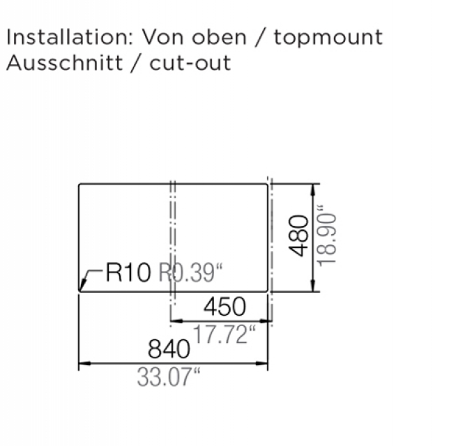 • diese Spüle ist nur als Einbau- bzw. Auflage-Spüle einbaubar, ein flächenbündiger Einbau oder der Einsatz als Unterbau-Spüle ist nicht möglich! Es gibt von diesem Modell jedoch Schwester-Varianten, die dafür vorgesehen sind (anstelle "A" am Ende "FB" für die flächenbündig einzubauende Variante und "U" für das Unterbau-Modell)