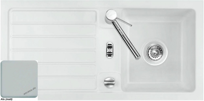 Hinweis: ist auf der oben stehenden Produktabbildung auf der Spüle ein runder Drehknebel zu sehen, handelt es sich um die Version mit Excenter-Betätigung. Eine eventuell abgebildete Armatur gehört nicht zum Lieferumfang.