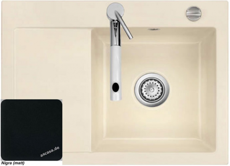 • diese Spüle ist nur als Einbau- bzw. Auflage-Spüle einbaubar; ein flächenbündiger Einbau oder der Einsatz als Unterbau-Spüle ist nicht möglich! Es gibt von diesem Modell jedoch eine Schwester-Variante, die dafür vorgesehen ist (am Ende "F" für die flächenbündig einzubauende Variante)