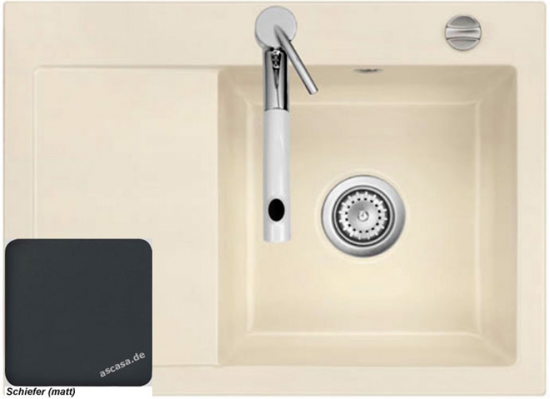 • diese Spüle ist nur als Einbau- bzw. Auflage-Spüle einbaubar; ein flächenbündiger Einbau oder der Einsatz als Unterbau-Spüle ist nicht möglich! Es gibt von diesem Modell jedoch eine Schwester-Variante, die dafür vorgesehen ist (am Ende "F" für die flächenbündig einzubauende Variante)
