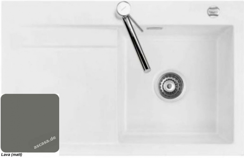 • diese Spüle ist nur als Einbau- bzw. Auflage-Spüle einbaubar; ein flächenbündiger Einbau oder der Einsatz als Unterbau-Spüle ist nicht möglich! Es gibt von diesem Modell jedoch eine Schwester-Variante, die dafür vorgesehen ist (am Ende "F" für die flächenbündig einzubauende Variante)