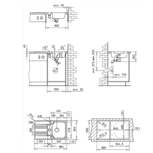 reversibel heißt: die Spüle läßt sich sowohl links als auch rechts herum einbauen; d. h. Sie können selbst entscheiden, ob Sie das Abtropfbecken auf der rechten oder auf der linken Seite haben möchten.
