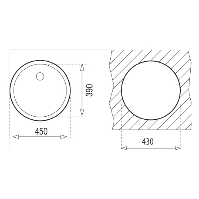 - Rundbecken (ohne Tropfmulde) passend für Unterschränke ab 45 cm