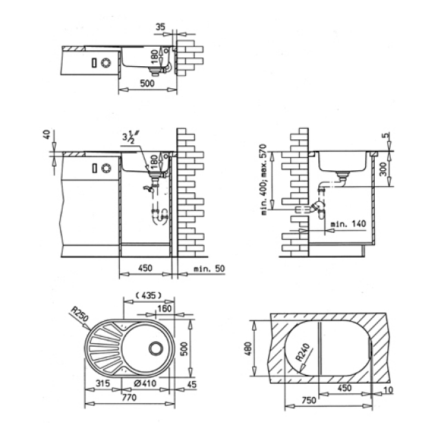 Arbeitsplattenausschnitt der SINA45-CN Spüle