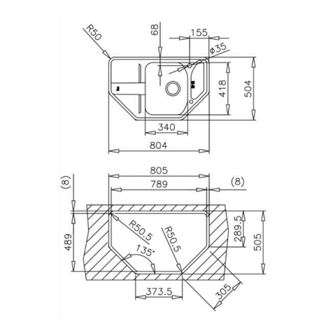 - sowohl als flächenbündige Spüle oder Auflagenspüle einbaubar