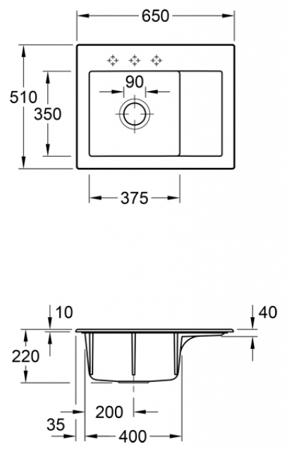 - diese Spüle ist nur als Einbau- bzw. Auflage-Spüle einbaubar; ein flächenbündiger Einbau oder der Einsatz als Unterbau-Spüle ist nicht möglich