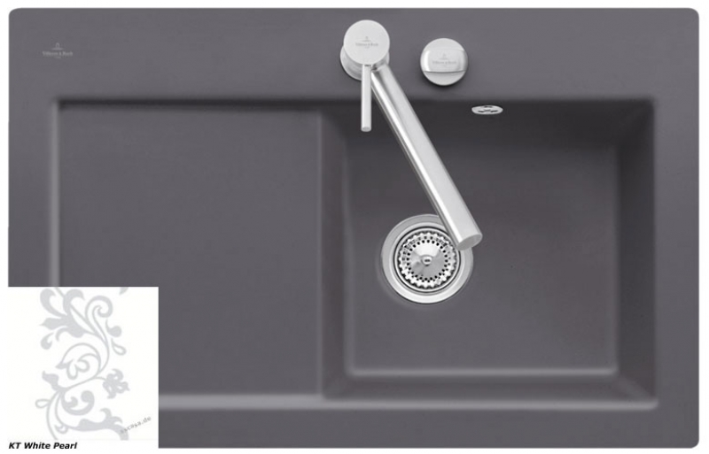 - Trendline - Dekore - Farben Ceramicplus: KW La Rose (auf der Abtropffläche), KT White Pearl (auf der Hahnlochbank)