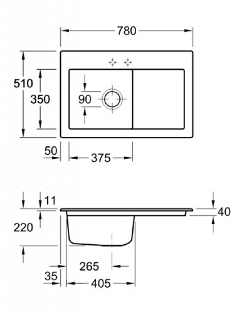 - diese Spüle ist nur als Einbau- bzw. Auflage-Spüle einbaubar; ein flächenbündiger Einbau oder der Einsatz als Unterbau-Spüle ist nicht möglich