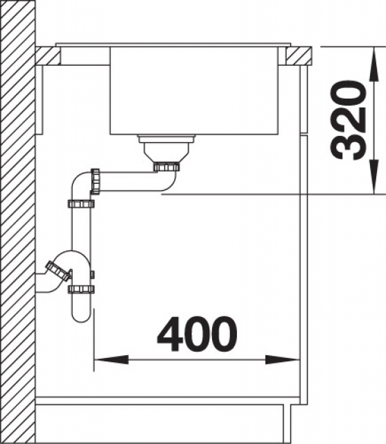 Ablaufgarnitur mit Raumsparrohr, 3 1/2'' Korbventile