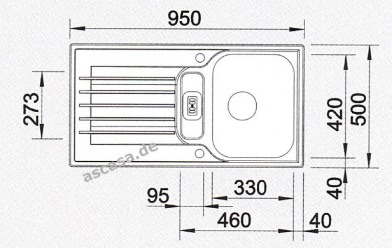 reversibel heißt: die Spüle läßt sich sowohl links als auch rechts herum einbauen; d. h. Sie können selbst entscheiden, ob Sie das Abtropfbecken auf der rechten oder auf der linken Seite haben möchten.