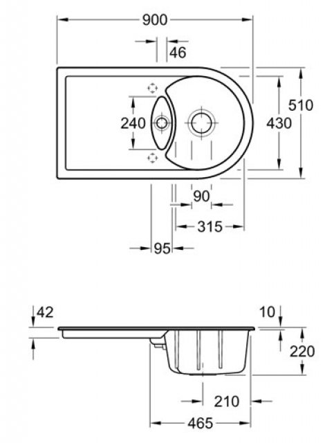 - Spülenmaße: L x B 900 x 510 mm