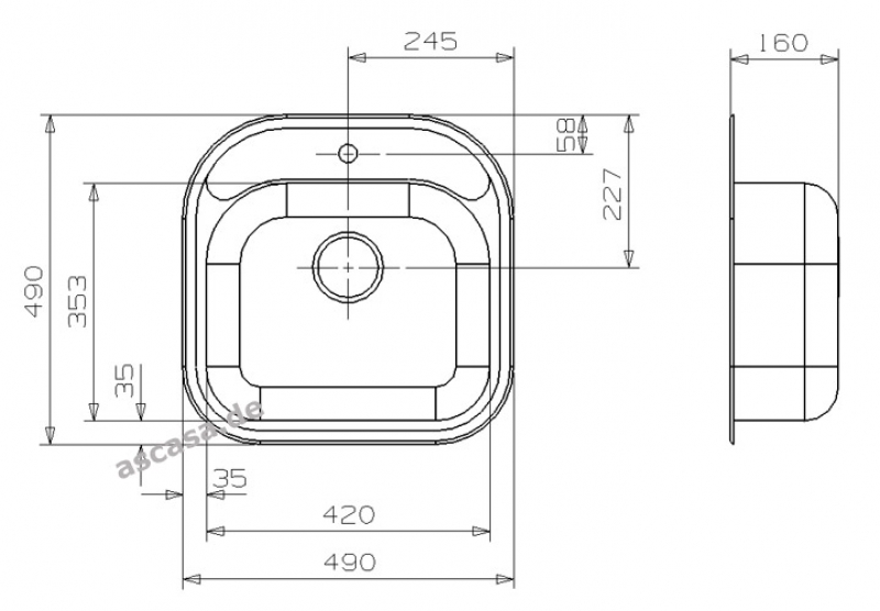 Reginox Boston KG-CC (304) ohne Überlauf kann nur als Einbau-/Auflage-Spüle eingebaut werden.
