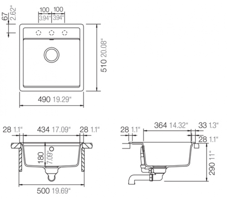 reversibel heißt: die Spüle läßt sich sowohl links als auch rechts herum einbauen; d. h. Sie können selbst entscheiden, ob Sie das Abtropfbecken auf der rechten oder auf der linken Seite haben möchten.