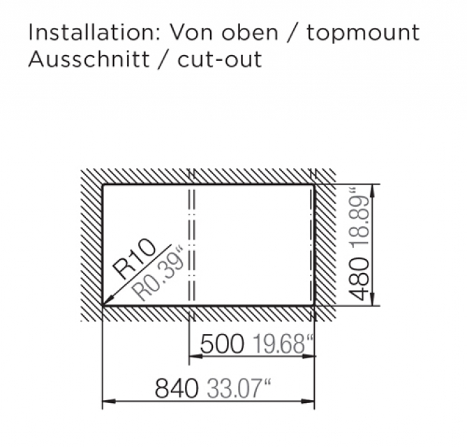 • Länge 860 mm, Breite 500 mm