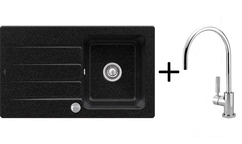 Angebot bestehend aus: Dornbracht Tara Classic Küchenarmatur, Hochdruck, Platin matt und Villeroy & Boch Architectura 50, Farbe J0 Chromit, Premiumline