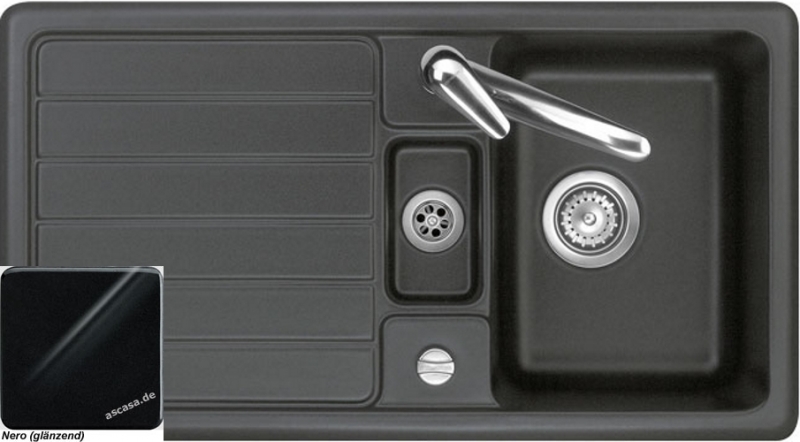 Hinweis: ist auf der oben stehenden Produktabbildung auf der Spüle ein runder Drehknebel zu sehen, handelt es sich um die Version mit Excenter-Betätigung. Eine eventuell abgebildete Armatur gehört nicht zum Lieferumfang.