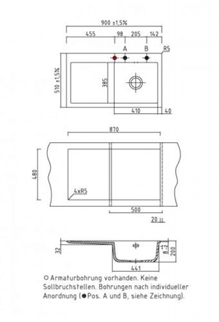 • Der Auslieferungszustand der Spüle beinhaltet eine Lochbohrung für die Armatur. Es sind keine Sollbruchstellen vorhanden; eine oder weitere Durchbohrung(en) kann nur im Werk des Herstellers Systemceram vorgenommen werden. Bitte geben Sie uns dafür exakt die von Ihnen gewünschte Position auf der Spüle an, gern auch anhand einer separaten Email, oder nehmen Sie diesbezüglich mit uns Kontakt auf. Bitte beachten Sie auch, daß Sie durch diese persönliche Positionierung der Lochbohrung einen für Sie individualisierten Artikel bestellen und erwerben, der nur für Sie speziell angefertigt wird. Diese Individualisierung und die damit verbundene nicht gegebene Möglichkeit eines anderweitigen Verkaufes durch uns kann zu einem Nicht-Wirksamwerden des Widerrufrechtes führen, welches individualisierte Produkte ausdrücklich ausnimmt. (Auf eine mit Produktmängeln zusammenhängende Reklamation hat dies selbstverständlich keinen Einfluß). Bitte sprechen Sie uns ggfs. hierauf an.