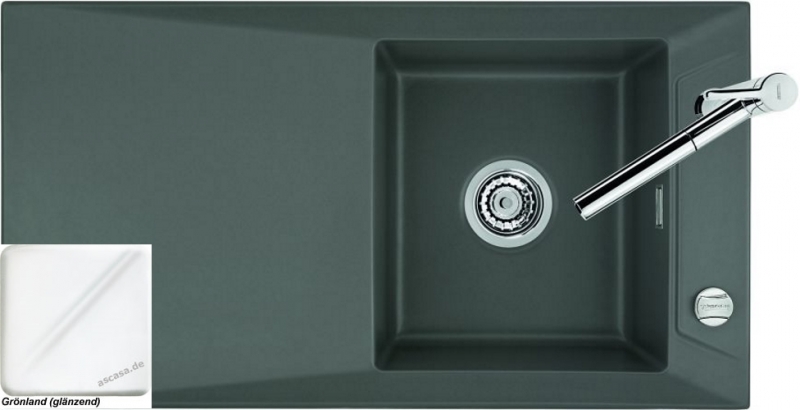 Hinweis: ist auf der oben stehenden Produktabbildung auf der Spüle ein runder Drehknebel zu sehen, handelt es sich um die Version mit Excenter-Betätigung. Eine eventuell abgebildete Armatur gehört nicht zum Lieferumfang.