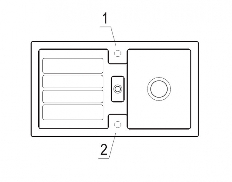 Option "Lochbohrungen durch Hersteller": Wenn Sie wünschen, dass aus Sicherheitsgründen die Lochbohrungen werksseitig vom Hersteller vorgenommen werden sollen, wählen Sie bitte diese Option. Hierfür benötigen wir von Ihnen die Nummern/Positionen des Hahnlochs/der Hahnlöcher, die V & B für Sie durchbohren soll. Bei der Spülenversion mit Handbetätigung benötigen Sie 1 Hahnlochbohrung für die Armatur, bei der Version mit Excenterbetätigung benötigen Sie 2 Lochbohrungen (Armatur und Excenter-Bedienung). Bitte beachten Sie hierzu die unten abgebildeten Maßzeichnungen, da die Positionen der Lochbohrungen bei reversiblen Spülen für die Becken-links und Becken-rechts-Versionen unterschiedlich sein können.