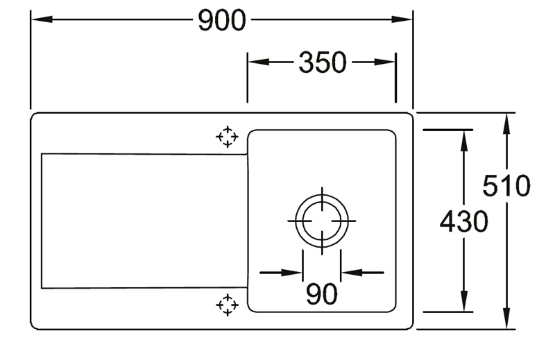 Option "Lochbohrungen durch Hersteller": Wenn Sie wünschen, dass aus Sicherheitsgründen die Lochbohrungen werksseitig vom Hersteller vorgenommen werden sollen, wählen Sie bitte diese Option. Hierfür benötigen wir von Ihnen die Nummern/Positionen des Hahnlochs/der Hahnlöcher, die V & B für Sie durchbohren soll. Bei der Spülenversion mit Handbetätigung benötigen Sie 1 Hahnlochbohrung für die Armatur, bei der Version mit Excenterbetätigung benötigen Sie 2 Lochbohrungen (Armatur und Excenter-Bedienung). Bitte beachten Sie hierzu die unten abgebildeten Maßzeichnungen, da die Positionen der Lochbohrungen bei reversiblen Spülen für die Becken-links und Becken-rechts-Versionen unterschiedlich sein können.