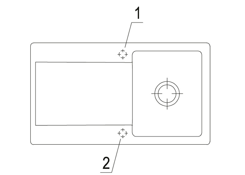 Option "Lochbohrungen durch Hersteller": Wenn Sie wünschen, dass aus Sicherheitsgründen die Lochbohrungen werksseitig vom Hersteller vorgenommen werden sollen, wählen Sie bitte diese Option. Hierfür benötigen wir von Ihnen die Nummern/Positionen des Hahnlochs/der Hahnlöcher, die V & B für Sie durchbohren soll. Bei der Spülenversion mit Handbetätigung benötigen Sie 1 Hahnlochbohrung für die Armatur, bei der Version mit Excenterbetätigung benötigen Sie 2 Lochbohrungen (Armatur und Excenter-Bedienung). Bitte beachten Sie hierzu die unten abgebildeten Maßzeichnungen, da die Positionen der Lochbohrungen bei reversiblen Spülen für die Becken-links und Becken-rechts-Versionen unterschiedlich sein können.