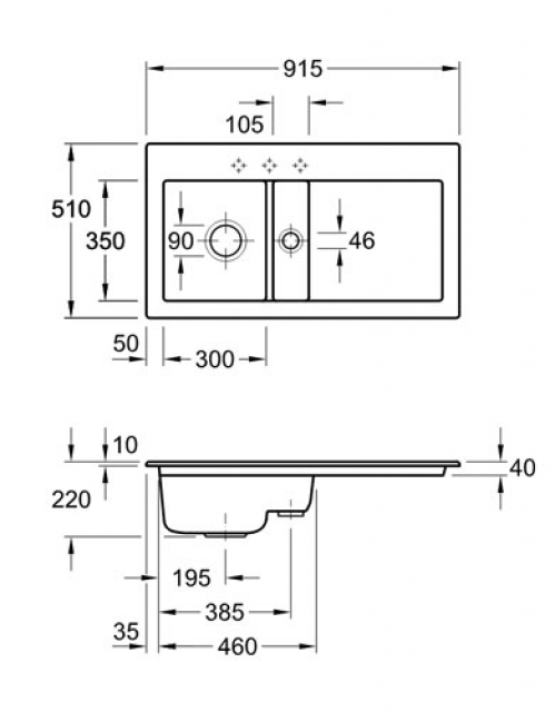 - diese Spüle ist nur als Einbau- bzw. Auflage-Spüle einbaubar; ein flächenbündiger Einbau oder der Einsatz als Unterbau-Spüle ist nicht möglich