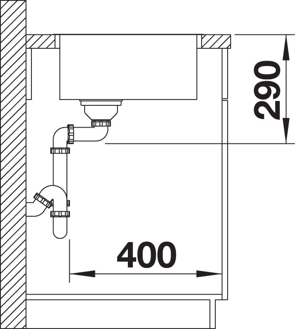 Ab- und Überlaufgarnitur mit Raumsparrohr