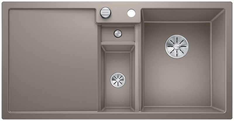 Die Spüle Blancocollectis 6 S ist in den Farbvarianten "anthrazit", "felsgrau", "alumetallic", "perlgrau", "weiß", "jasmin", "champagner", "tartufo", "muskat" und "cafe" erhältlich.