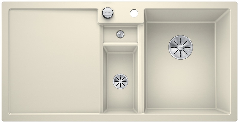 Die Spüle Blancocollectis 6 S ist in den Farbvarianten "anthrazit", "felsgrau", "alumetallic", "perlgrau", "weiß", "jasmin", "champagner", "tartufo", "muskat" und "cafe" erhältlich.