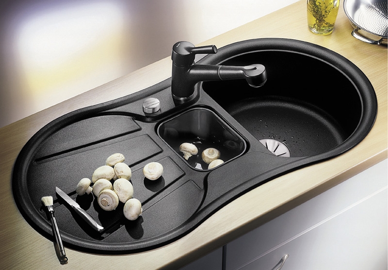 reversibel heißt: die Spüle läßt sich sowohl links als auch rechts herum einbauen; d. h. Sie können selbst entscheiden, ob Sie das Abtropfbecken auf der rechten oder auf der linken Seite haben möchten.