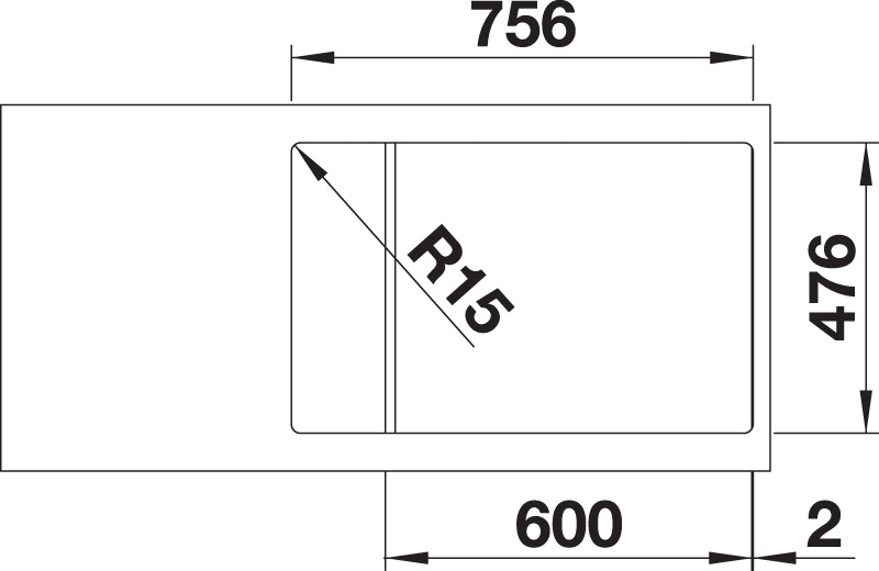 • Einbauspüle für den 60 cm-Spülenunterschrank in Flachrand-Ausführung Flachrand