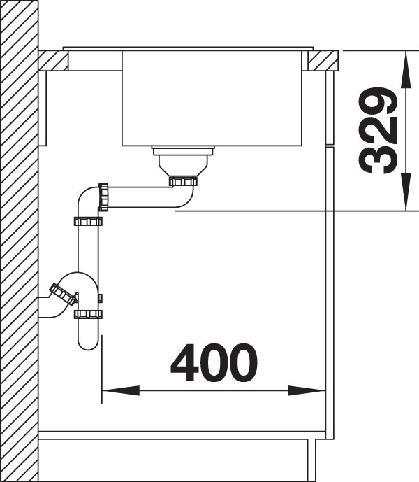 Ablaufgarnitur mit Raumsparrohr, 3 1/2'' Korbventil, ohne Ablauffernbedienung