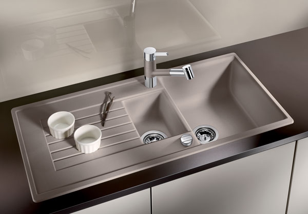 • Die Spüle Blancozia 6 S ist in den Farbvarianten "anthrazit", "alumetallic", "weiss", "jasmin", "champagner" und "cafe" erhältlich.