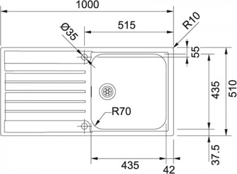 reversibel heißt: die Spüle läßt sich sowohl links als auch rechts herum einbauen; d. h. Sie können selbst entscheiden, ob Sie das Abtropfbecken auf der rechten oder auf der linken Seite haben möchten.