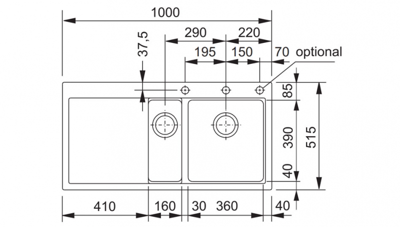 Inklusive Ablaufgarnitur und Abtropfbecken