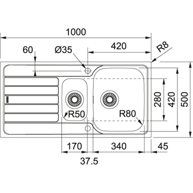 reversibel heißt: die Spüle läßt sich sowohl links als auch rechts herum einbauen; d. h. Sie können selbst entscheiden, ob Sie das Abtropfbecken auf der rechten oder auf der linken Seite haben möchten.