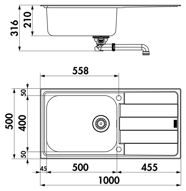 reversibel heißt: die Spüle läßt sich sowohl links als auch rechts herum einbauen; d. h. Sie können selbst entscheiden, ob Sie das Abtropfbecken auf der rechten oder auf der linken Seite haben möchten.