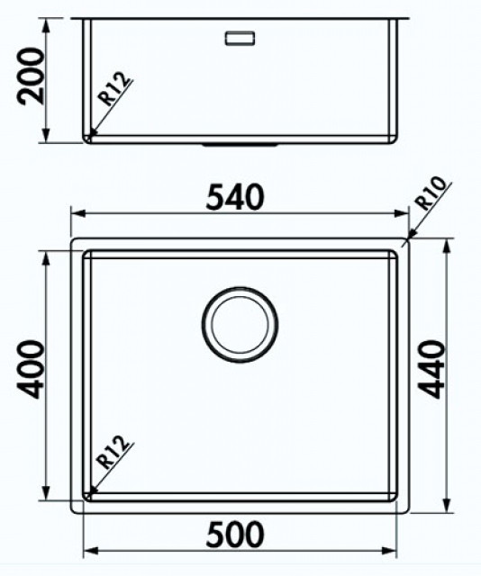 Spülenmaß: 540 x 440 mm