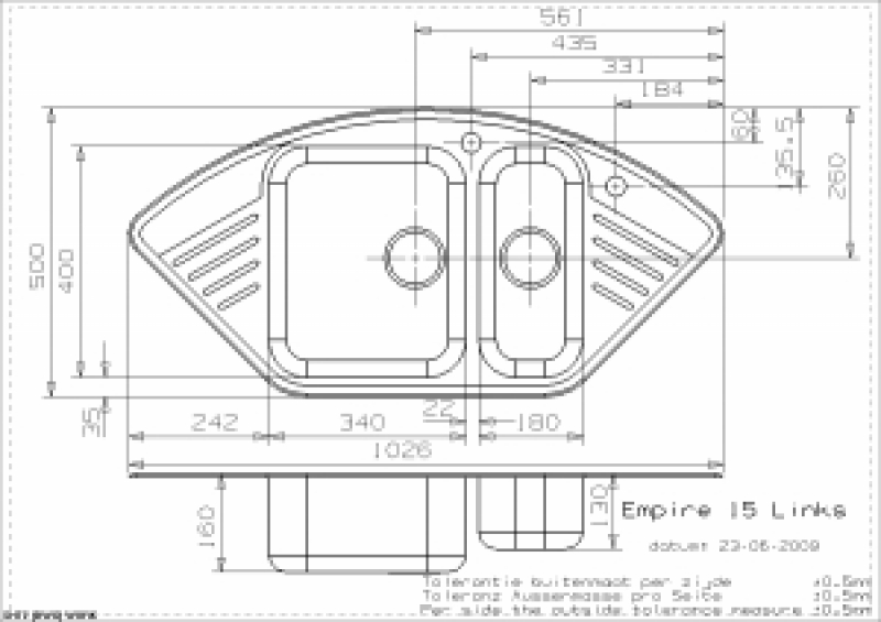 • Abmessung der Spüle: 180 x 400 mm/340 x 400 mm