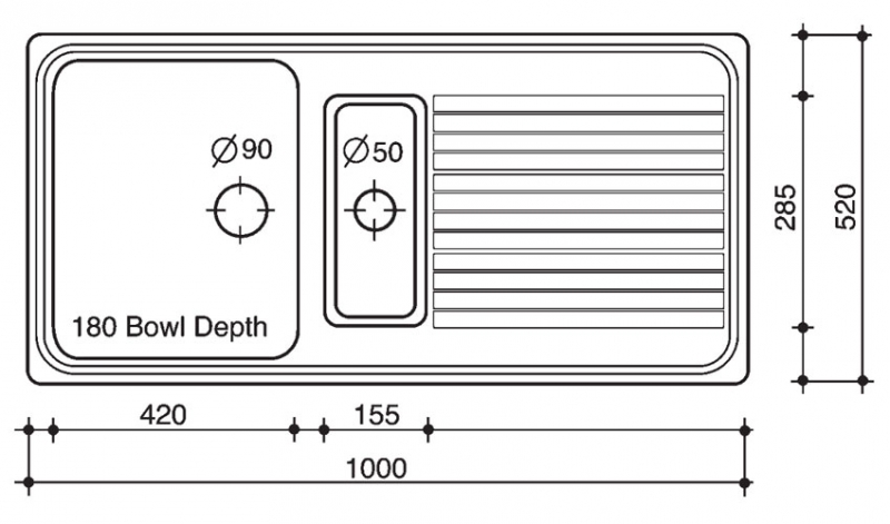 reversibel heißt: die Spüle läßt sich sowohl links als auch rechts herum einbauen; d. h. Sie können selbst entscheiden, ob Sie das Abtropfbecken auf der rechten oder auf der linken Seite haben möchten.
