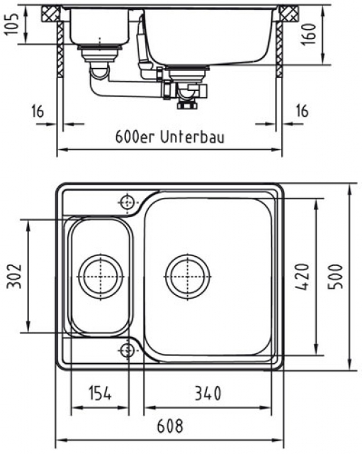 • Einbauspüle für 60 cm-Unterschrank, reversibel