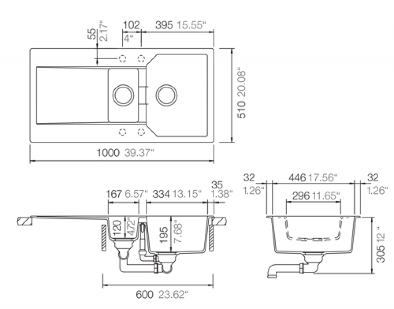 reversibel heißt: die Spüle läßt sich sowohl links als auch rechts herum einbauen; d. h. Sie können selbst entscheiden, ob Sie das Abtropfbecken auf der rechten oder auf der linken Seite haben möchten.