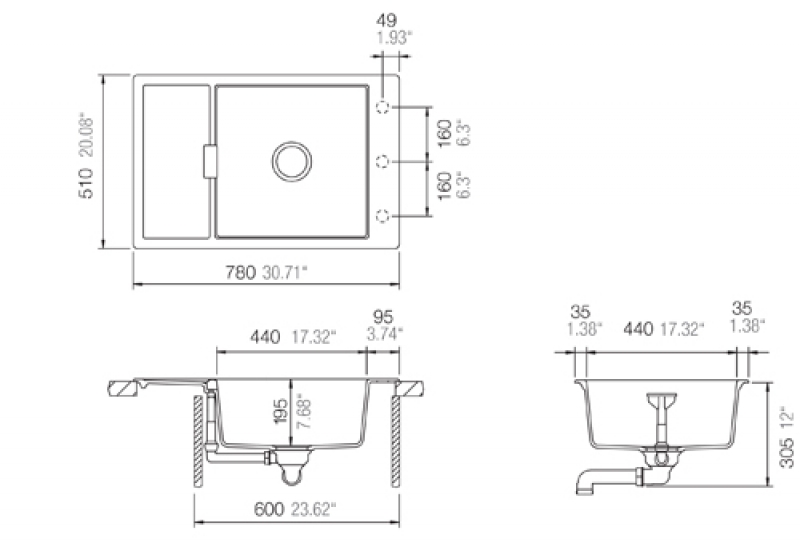 reversibel heißt: die Spüle läßt sich sowohl links als auch rechts herum einbauen; d. h. Sie können selbst entscheiden, ob Sie das Abtropfbecken auf der rechten oder auf der linken Seite haben möchten.