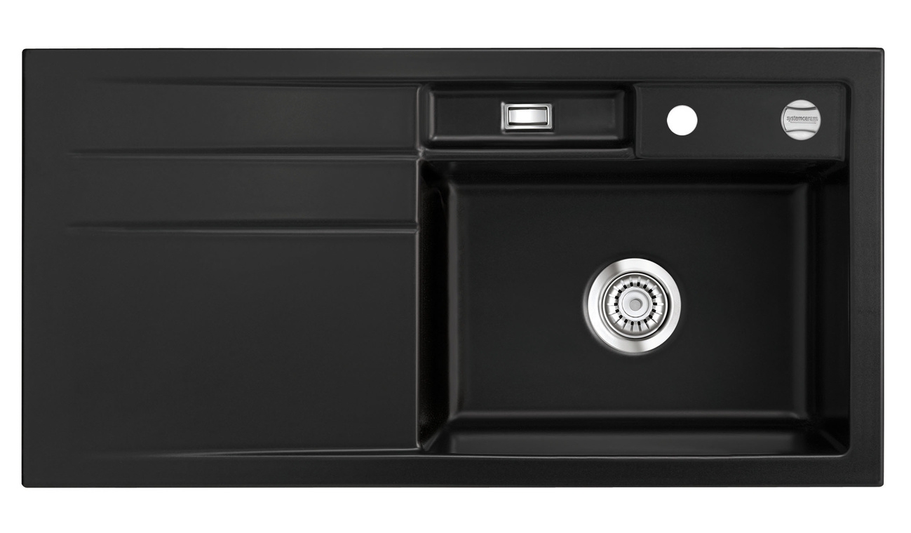 einbaubarDas Füllen und Ablaufen der Spüle wird über einen runden Drehknebel auf der Oberseite der Spüle vorgenommen. Dieser Knebel, Excenterbetätigung genannt, verschließt oder öffnet den Ablauf der Spüle, je nachdem in welche Richtung er gedreht wird. Der Griff in das Spülwasser entfällt somit.