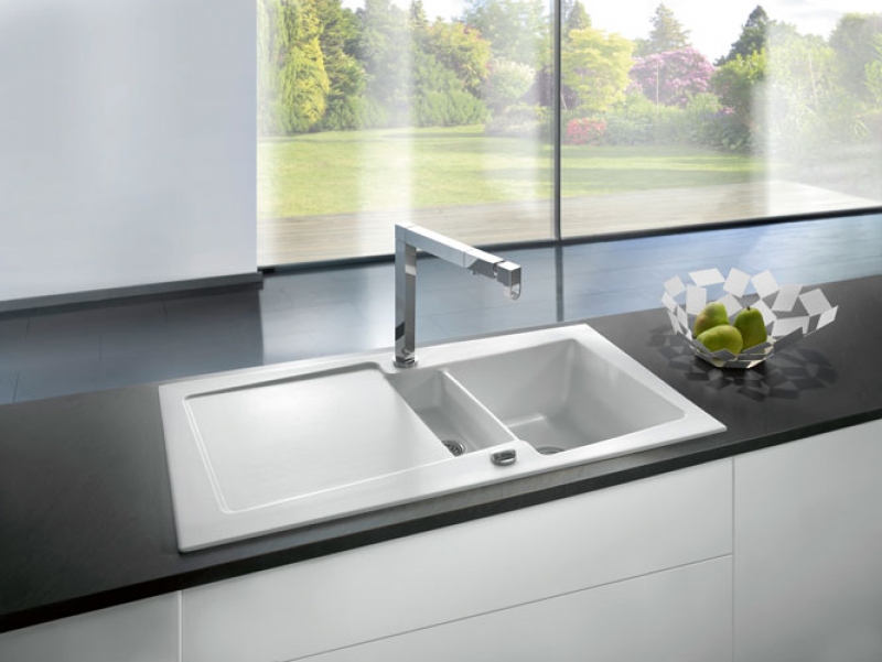 Hinweis: ist auf der oben stehenden Produktabbildung auf der Spüle ein runder Drehknebel zu sehen, handelt es sich um die Version mit Excenter-Betätigung. Eine eventuell abgebildete Armatur gehört nicht zum Lieferumfang.