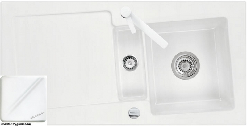 reversibel heißt: die Spüle läßt sich sowohl links als auch rechts herum einbauen; d. h. Sie können selbst entscheiden, ob Sie das Abtropfbecken auf der rechten oder auf der linken Seite haben möchten.