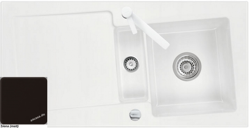 Hinweis: ist auf der oben stehenden Produktabbildung auf der Spüle ein runder Drehknebel zu sehen, handelt es sich um die Version mit Excenter-Betätigung. Eine eventuell abgebildete Armatur gehört nicht zum Lieferumfang.