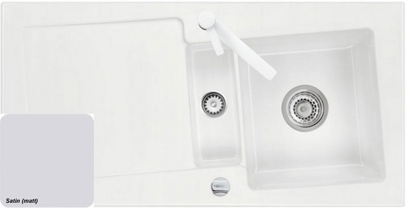 Hinweis: ist auf der oben stehenden Produktabbildung auf der Spüle ein runder Drehknebel zu sehen, handelt es sich um die Version mit Excenter-Betätigung. Eine eventuell abgebildete Armatur gehört nicht zum Lieferumfang.