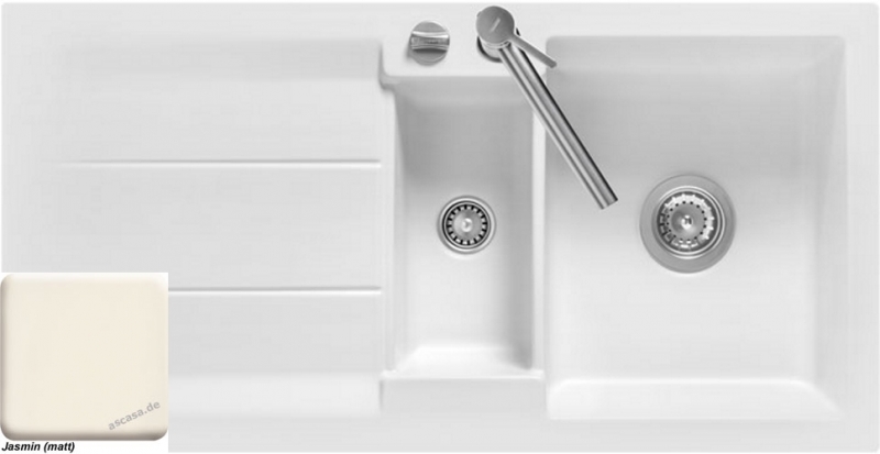 - diese Spüle ist nur als Einbau- bzw. Auflage-Spüle einbaubar; ein flächenbündiger Einbau oder der Einsatz als Unterbau-Spüle ist nicht möglich! Es gibt von diesem Modell jedoch eine Schwester-Variante, die dafür vorgesehen ist (am Ende "F" für die flächenbündig einzubauende Variante)