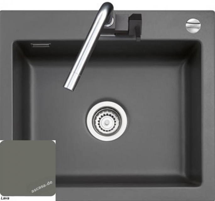 Das Füllen und Ablaufen der Spüle wird über einen runden Drehknebel auf der Oberseite der Spüle vorgenommen. Dieser Knebel, Excenterbetätigung genannt, verschließt oder öffnet den Ablauf der Spüle, je nachdem in welche Richtung er gedreht wird. Der Griff in das Spülwasser entfällt somit.